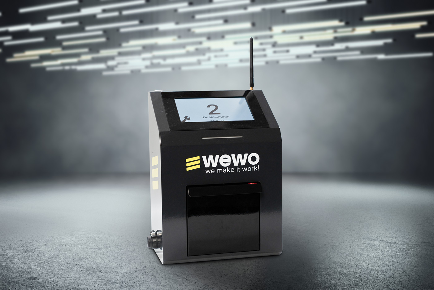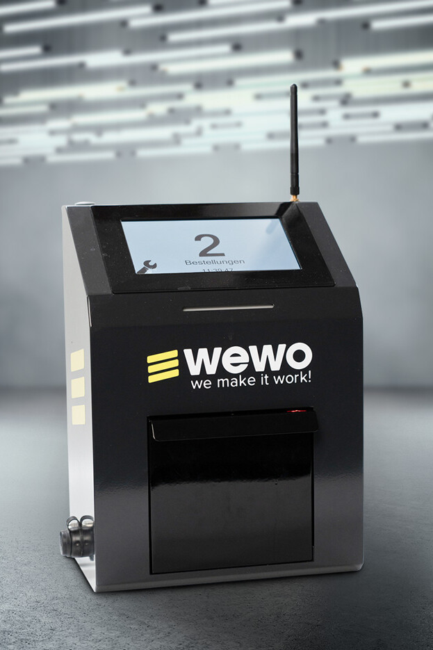 - 15” Touch Reader - Anschluss für 2 WECO RFID Lösungen - Etiketten Einwurf - Barcode und RFID Reader - Zählung der Bestellauslösungen - USB Kamera für Support möglich