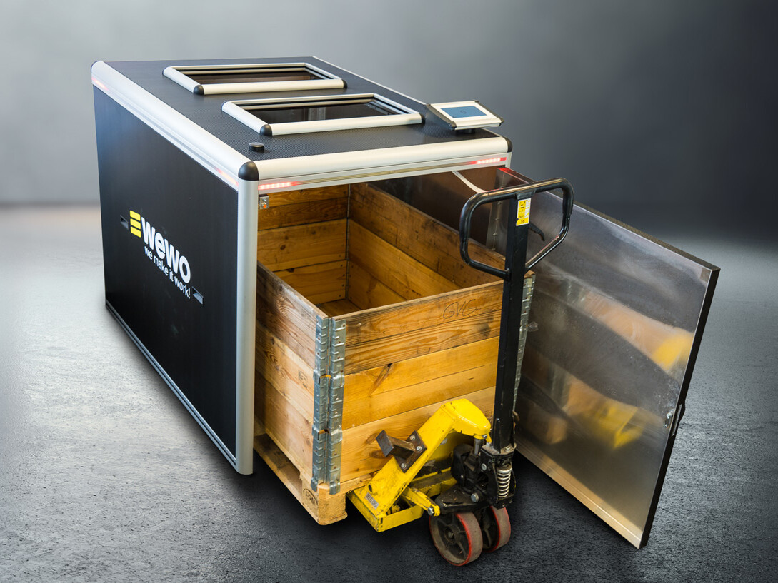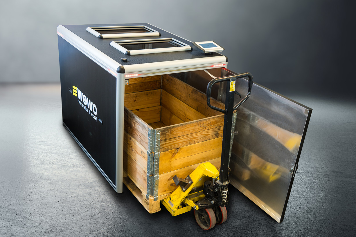 Ein innovatives Produkt, das eine schnelle Installation und ein schlichtes benutzerfreundliches Design bietet. Mit einem Leuchtsignal bei Einwurf und einem roten Signal bei vollem Füllstand, inklusive detaillierter Informationen, behalten Sie stets den Überblick. Die Box bietet Platz für mindestens 100 Behälter, die auf einer Palette im inneren gesammelt werden.